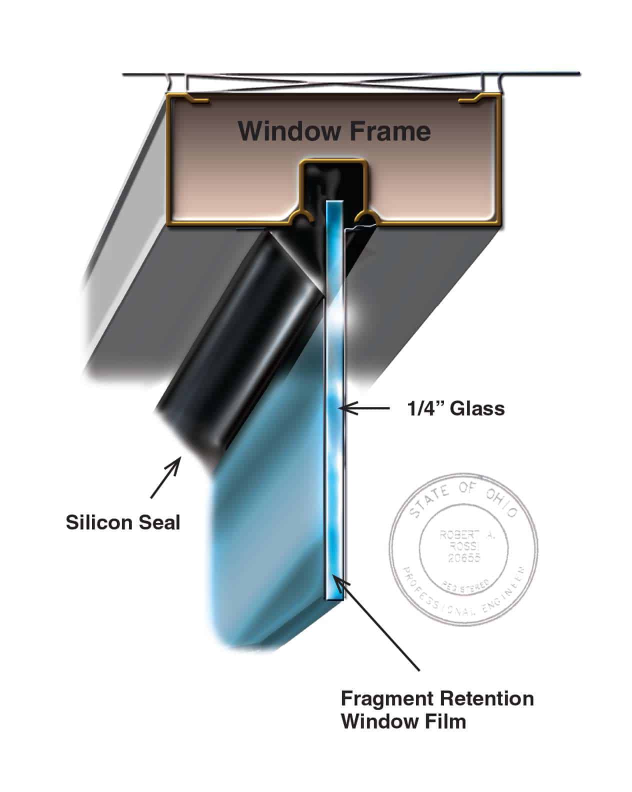 Four-sided attachments are the strongest of the mechanical attachment systems. The films are designed to withstand tremendous loads, and the full pressure of a blast event is transferred to the window framing. Most standard commercial windows or storefront systems cannot withstand this intense pressure and the window frame system will fail before the film attachment does. Four-sided attachments are often specified in day care facilities – areas where no glass particles can afford to penetrate – or as an inexpensive insurance policy against a large blast event. Since the film will experience severe pressure loads, heavier gauge films are required.